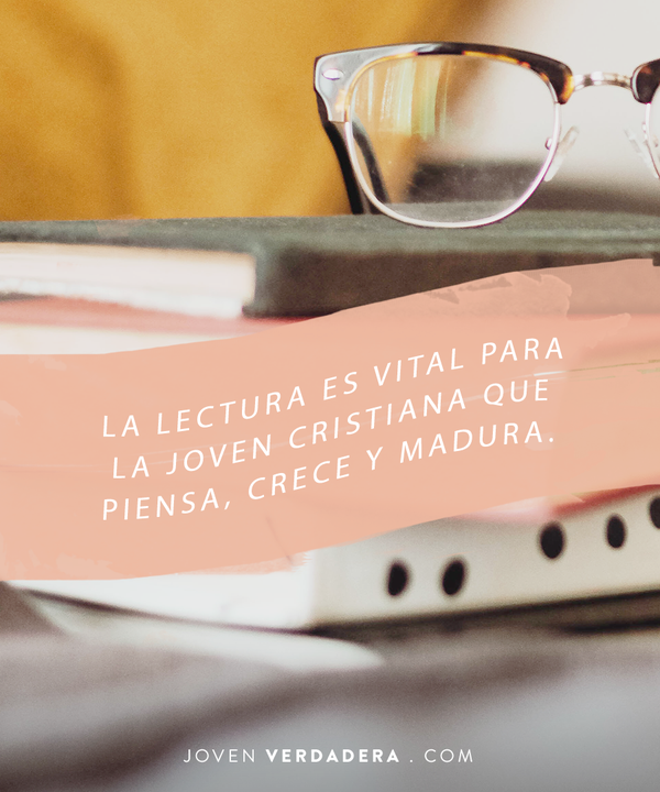 Pero la lectura es vital para la joven cristiana que piensa, crece y madura. La Biblia siempre debe ser nuestra base firme (nuestro libro favorito, más leído y amado). Sin embargo, leer otros libros también es necesario. Nos ayudan a aplicar la Palabra de Dios y ver su verdad en las historias. Son una excelente herramienta y regalo que Dios nos ha dado para participar en su mundo y crecer en sabiduría.