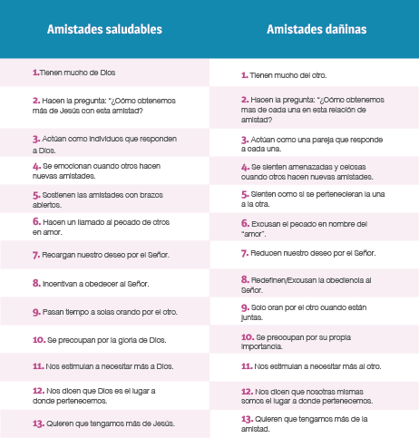 Aquí debajo hay una tabla que te ayudará a comparar amistades dañinas e idolatras con amistades Cristo-céntricas.
