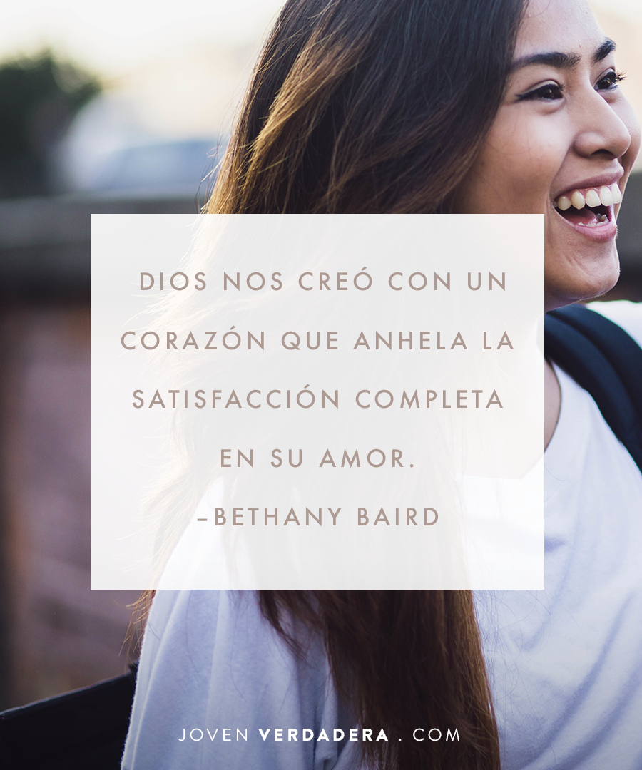 Cuando leo estos pasajes en Génesis, me sorprende lo intencional que fue Dios. Él creó a Adán y Eva (y a cada ser humano desde ese momento) con un corazón y, por ende, con la capacidad de amar y ser amado. Él nos creó a cada una de nosotras con un corazón que, en última instancia, anhela la satisfacción completa en Su amor.