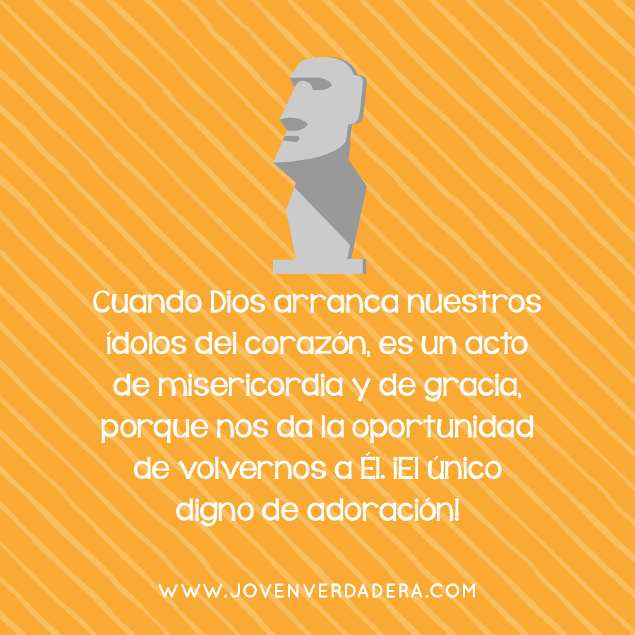 Un ídolo es todo aquello que tenga tu alabanza, afecto, atención y adoración más que Dios. Nosotros somos muy propensos a adorar a ídolos. Nuestra inclinación natural es poner algo, lo que sea, en el trono de nuestros corazones, otra cosa que no sea Dios. Cuando esto pasa, Él podría cortar la cabeza de nuestro ídolo.