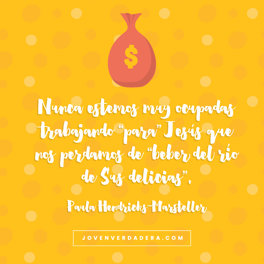 Chicas, mi oración para ustedes, y para mí, es que nunca estemos muy ocupadas trabajando “para” Jesús que nos perdamos de “beber del río de Sus delicias” (Sal. 36:8).