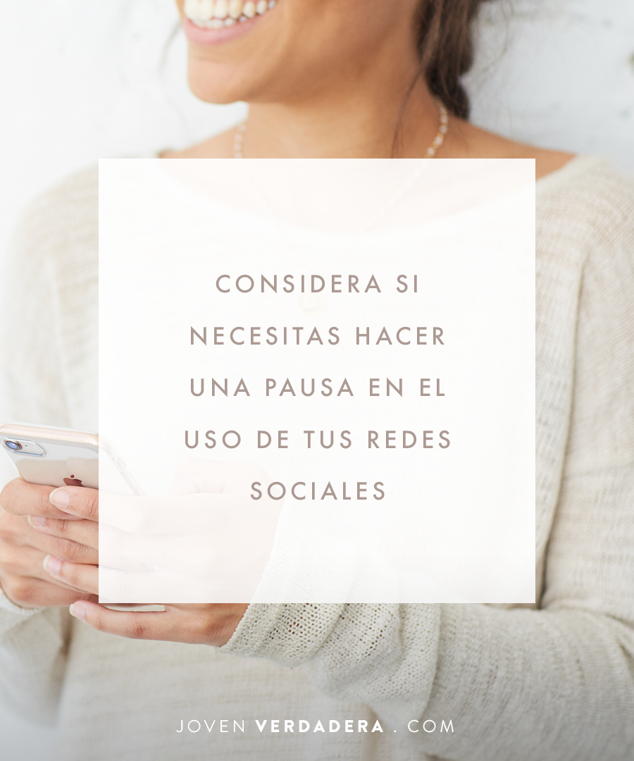 ¿Te sientes identificada con alguna de estas preguntas de diagnóstico? ¿Puede ser que sea tiempo de romper tu relación con las redes sociales por un ratito? Si es así, comprométete a hacer un ayuno de ellas durante un cierto período de tiempo, y hazlo. (¡Quedarás impactada de lo refrescante que es!)