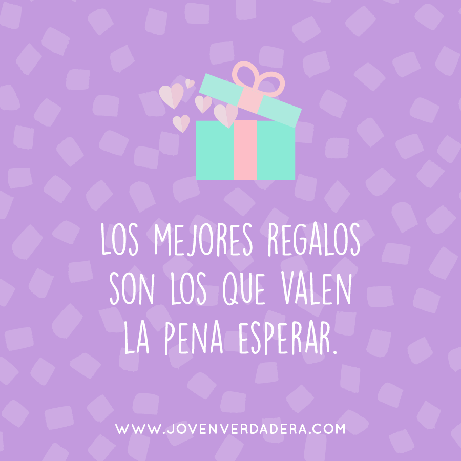 Dios sabe que un regalo es mejor debido a la espera. Cuando engañamos al sistema abriendo uno de sus perfectos regalos antes de tiempo, este deja de ser perfecto. Es por eso que los mejores regalos que Dios nos da por lo general tienen una etiqueta firmada: “Espera para abrirlo. Confía en mí, ¡que va a ser bueno! Con amor, papá".