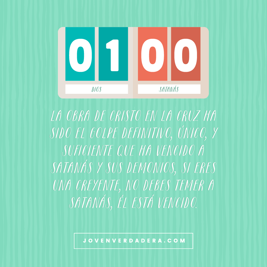 Si eres creyentes, recuerda Satanas no puede hacer nada en tu vida que Dios no lo permita, y si no eres creyente, mira a Cristo, mira la cruz, Su sacrificio es el unico capaz de sacarte de las garras del diablo y de la condención eterna.