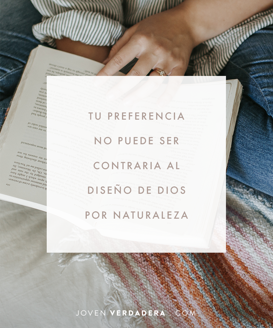 Tu preferencia no puede ser contraria al diseño de Dios por naturaleza.