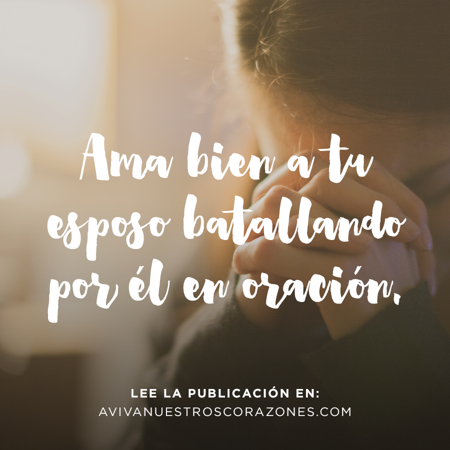 ¡Ama bien a tu esposo batallando en oración por él! Encuentra pasajes de las Escrituras que hablen sobre las áreas de necesidad específicas de tu esposo, y aplícalas regularmente durante tu intercesión por él. Pregúntale los retos específicos que está enfrentando en el trabajo o en otras áreas, y cómo puedes orar por él. Cuando le pidas esta información, dile que tú también batallas, y que entiendes la necesidad de apoyo en oración. No te acerques con actitudes de “superioridad espiritual.”