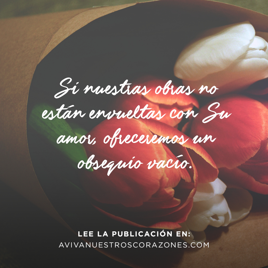 Si nuestras obras no están envueltas con Su amor, ofreceremos un obsequio vacío. Porque es posible dar sin amar, pero nunca será posible amar sin dar.