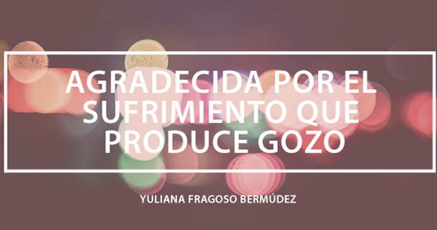 Todo sufrimiento ayuda para nuestro bien, y al recibir la gracia de Dios que nos fortalece y nos llena de GOZO, también podremos darle gracias para gloria de Su Santo Nombre.1 Pedro 1:6-7(DHH) dice: que por esta razón (por la FE en Dios) estamos llenas de alegría, aun cuando sea necesario que durante un poco de tiempo pasemos por muchas pruebas. Porque nuestra fe es como el oro: su calidad debe ser probada por medio del fuego. La fe que resiste la prueba vale mucho más que el oro, el cual se puede destruir. De manera que la fe de nosotras, al ser así probada, merecerá aprobación, gloria y honor cuando Jesucristo aparezca.