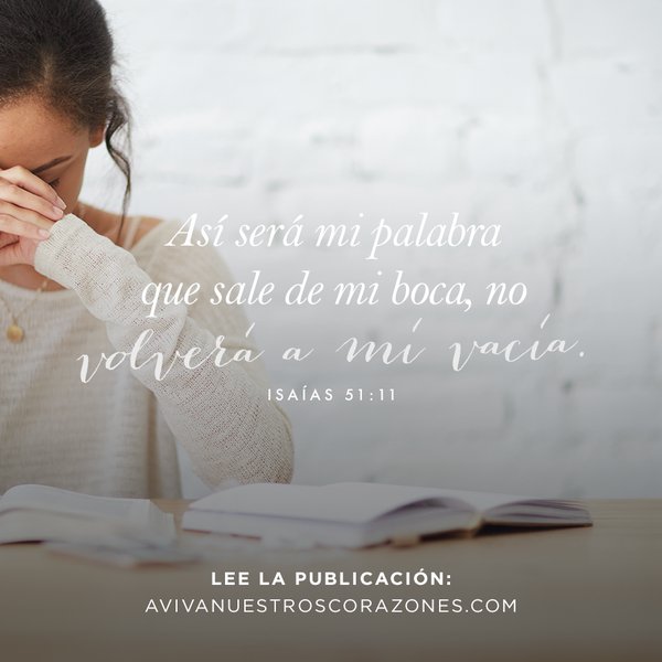 Porque como descienden de los cielos la lluvia y la nieve, y no vuelven allá sino que riegan la tierra, haciéndola producir y germinar, dando semilla al sembrador y pan al que come, así será mi palabra que sale de mi boca, no volverá a mí vacía sin haber realizado lo que deseo, y logrado el propósito para el cual la envié.