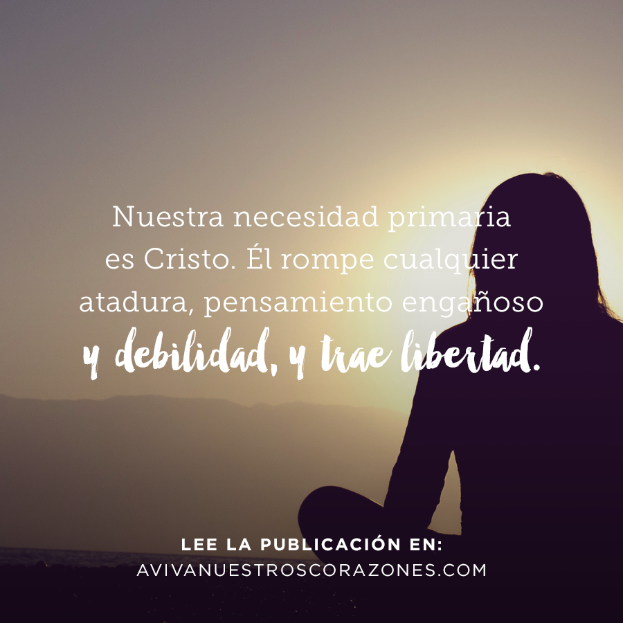 Nuestra necesidad primaria es CRISTO. Él rompe cualquier atadura, pensamiento engañoso y debilidad, y trae LIBERTAD. No es en nuestras propias fuerzas, es a través de las fuerzas de Cristo. Lee esta oración detenidamente, puedes ser LIBRE en CRISTO.