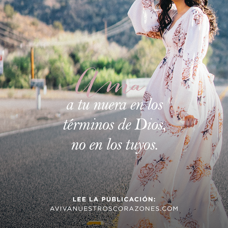 ¿Cómo se afectaría el legado de tu familia si hicieras lo imposible por amar a tu nuera de acuerdo a los principios de Dios, y si hicieras un voto de solo hablarle de maneras que la edifiquen (Efesios 4:29)? ¿Qué podría hacer Dios en la siguiente generación si tu hicieras todo lo que esté a tu alcance para amar a tu nuera en Sus términos, y no en los tuyos?