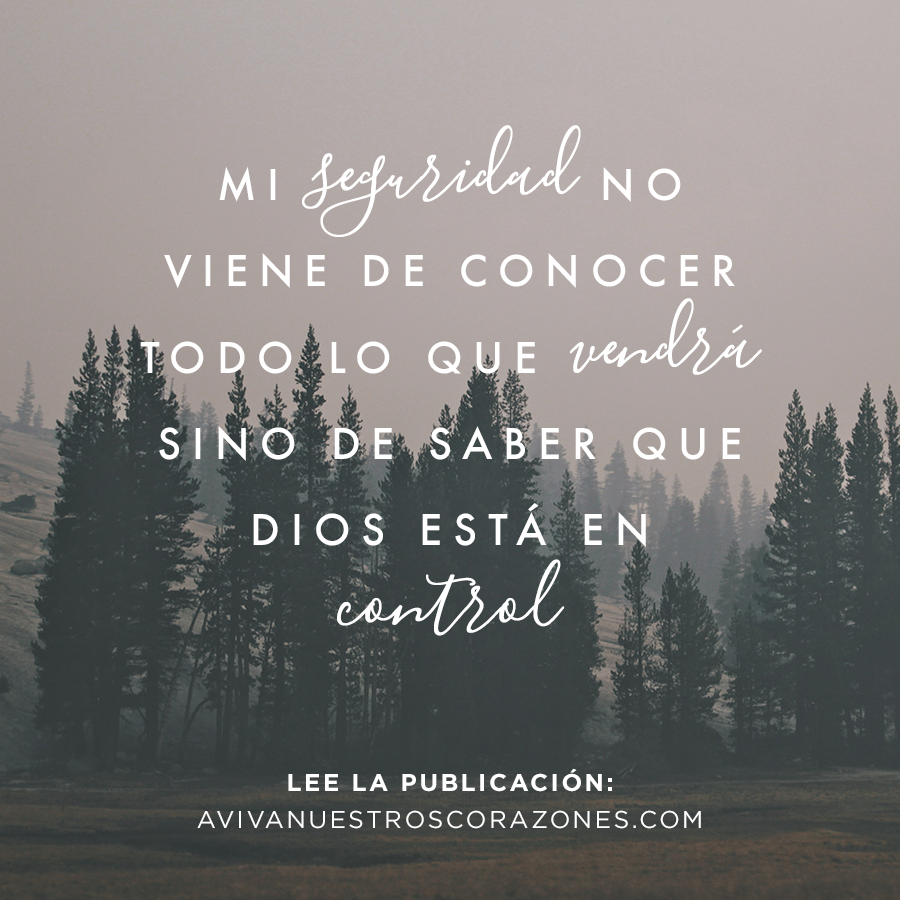 Dios no está siendo severo ni cruel. Él quiere que vea que esta carga de querer tener a todos seguros y evitarles un desastre no es algo que Él haya colocado sobre mis hombros. Él no me ha pedido tener el control. Lo que Dios requiere de mí y a lo que me ha invitado es a confiar en Él.