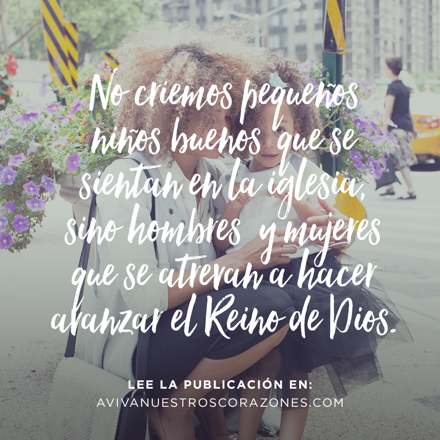No criemos pequeños “niños buenos” que se sientan en la iglesia y hacen lo que se les ordena. Sino criemos hombres peligrosos y mujeres que se atrevan a hacer avanzar el Reino de Dios.