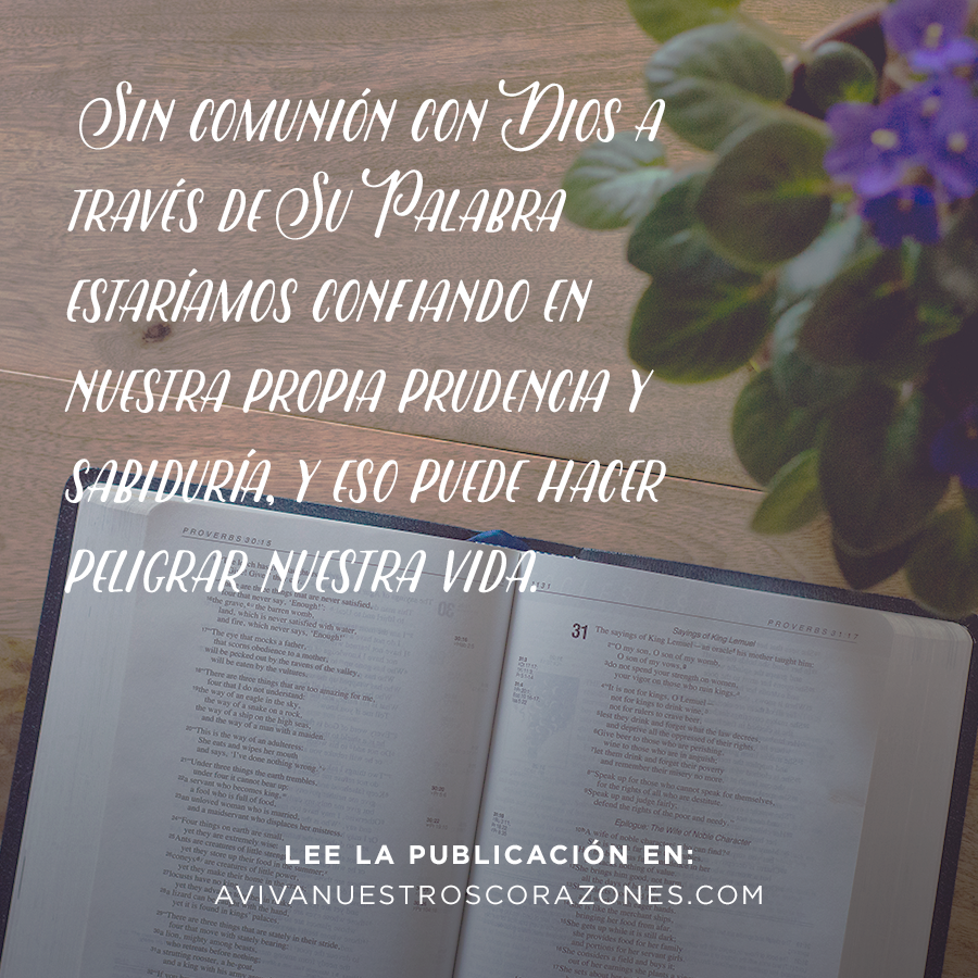 Su Palabra ilumina nuestra oscuridad, nos guía cuando estamos perdidos, nos alienta cuando estamos decaídos, nos alimenta cuando estamos desnutridos, nos sostiene cuando necesitamos ser fortalecidos, nos consuela cuando estamos tristes, nos redarguye cuando andamos en desobediencia, nos instruye en Sus caminos y nos enseña su voluntad. Siendo hijas de Dios, ¿cómo podríamos vivir o dar un paso sin tener esta comunión diaria? Aun Cristo, siendo Dios, necesitaba tener comunión con su padre continuamente.