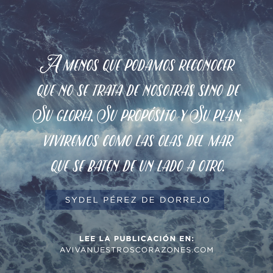 La vida es un vapor (Santiago 4:14) y a menos que podamos reconocer que no se trata de nosotros sino de Su gloria, Su propósito y Su plan, viviremos como las olas del mar que se baten de un lado a otro. Pensando que mi plan y voluntad han de hacerse y que todos los imprevistos que de seguro vendrán, son obstáculos o problemas cuando en realidad son medios para Dios mostrarnos Su poder y Su soberanía.