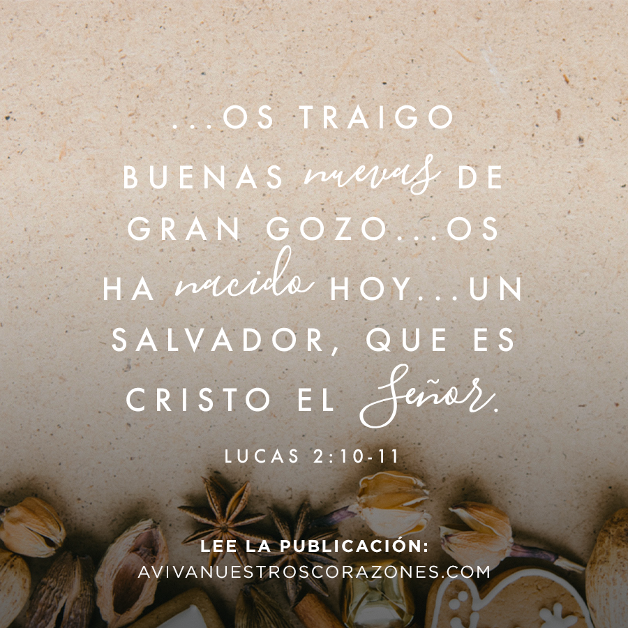 No te rindas, amada hermana que sufres. Puede que no estés experimentando el ánimo navideño, pero sí puedes recordar las noticias de gozo que esta época representa. Puede que no quieras cantar sobre alegría y prosperidad ni cascabeles, pero quedan noticias más grandes por las cuales cantar. No permitas que tu dolor te aleje de Aquel que te trae buenas nuevas de consuelo y de gozo. El mismo bebito del pesebre es el Poderoso Rey y Salvador Jesús que ofrece descanso para tu alma y fortaleza para llevar tu carga (Mateo 11:28-30).