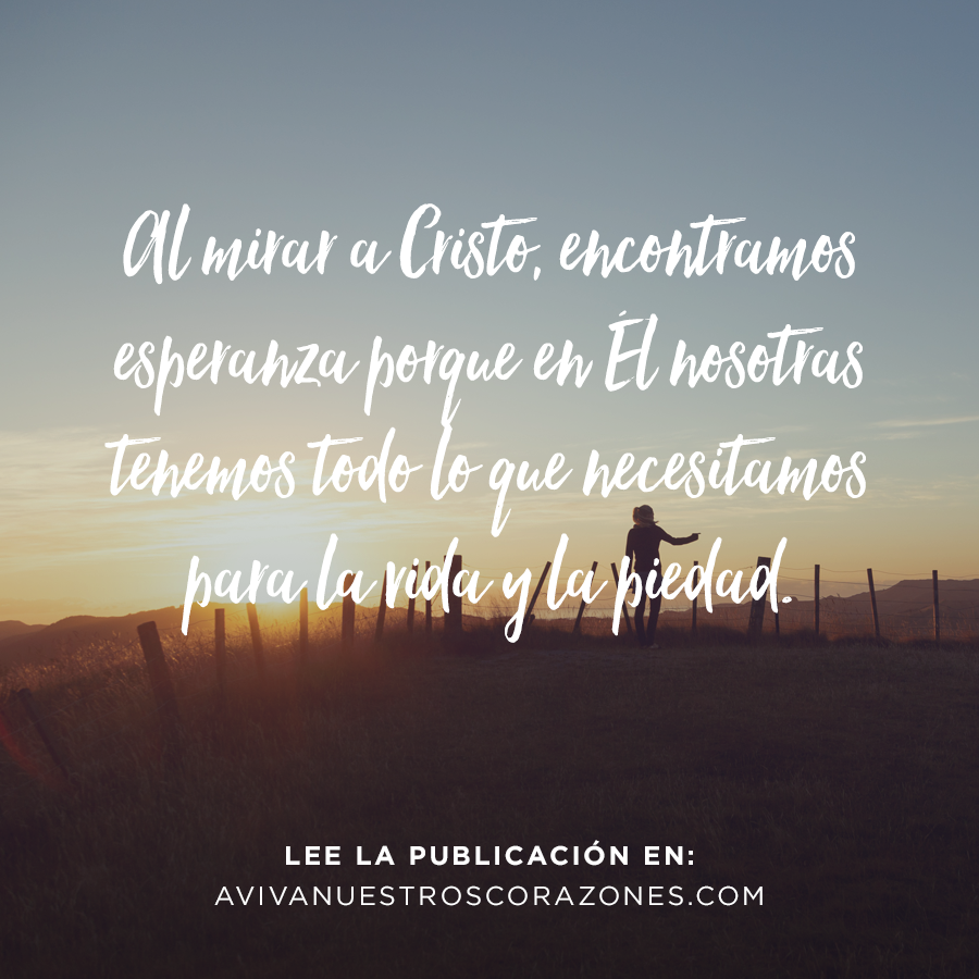 Muchas veces nuestras luchas nos ciegan a la esperanza que tenemos frente a nosotras. Así como un millonario que actúa como un pordiosero, teniendo nosotras una fuente de riquezas en Cristo, pero sin poder ver más allá de nuestras circunstancias para apoderarnos de ellas. Pero al mirar a Cristo, encontramos esperanza porque en Él nosotras tenemos todo lo que necesitamos para la vida y la piedad. (2 Pedro 1:3)