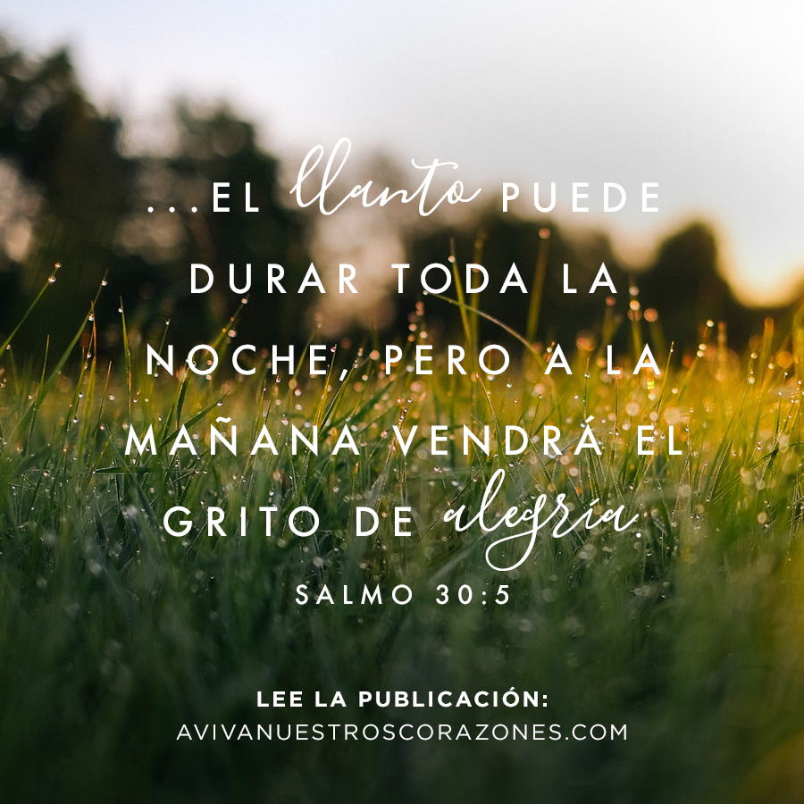 La Palabra es clara al decirnos que el duelo precede a la danza (Salmo 30:11) y que el llanto puede durar toda la noche pero que a la mañana llega la alegría (Sal. 30:5). A través de las Escrituras vemos este patrón: la muerte precede a la resurrección.