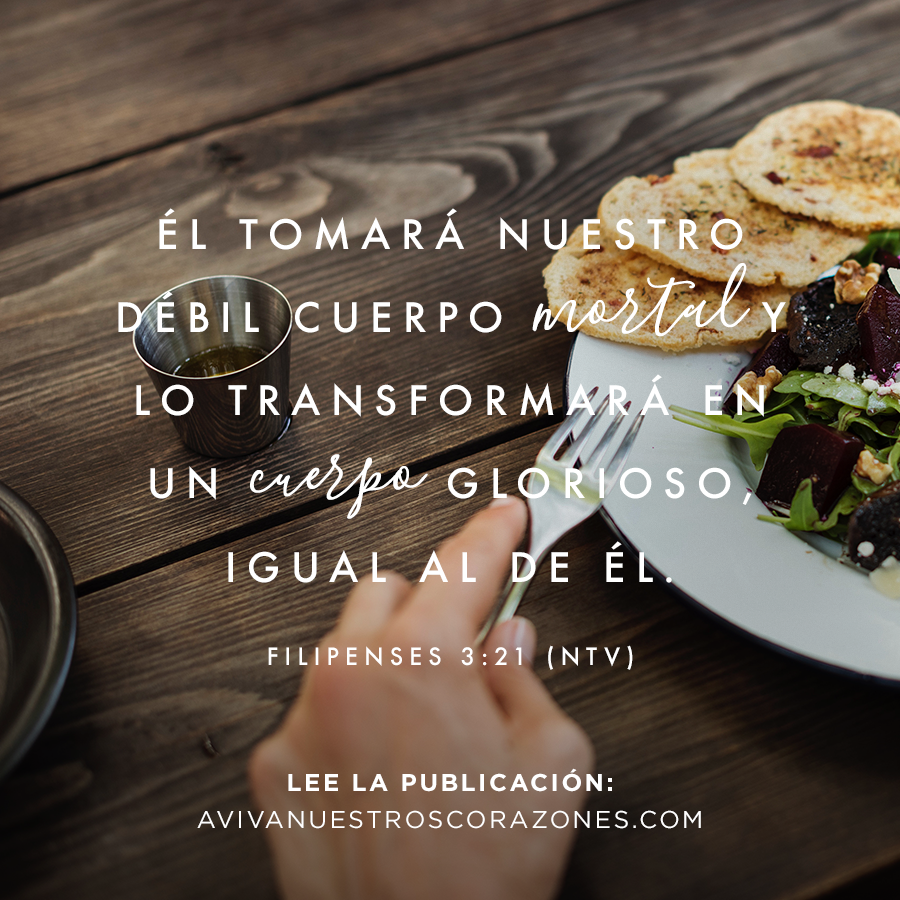 Nuestros cuerpos caídos e imperfectos son otra oportunidad para que miremos a Cristo. Por Su gracia, podemos quitar los ojos de nosotras mismas, y fijarlos en Jesús. Nuestros cuerpos han sido hechos para adorarle y si el Señor nos permite vivir lo suficiente, tendremos cuerpos que no podrán hacer otra cosa más que eso precisamente.
