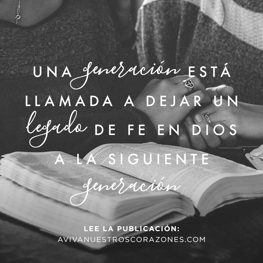 - Una generación está llamada a dejar un legado de fe en Dios a la siguiente generación, basado en mujeres que sirvan de apoyo y guía las unas a las otras y se estimulen al amor y a las buenas obras.