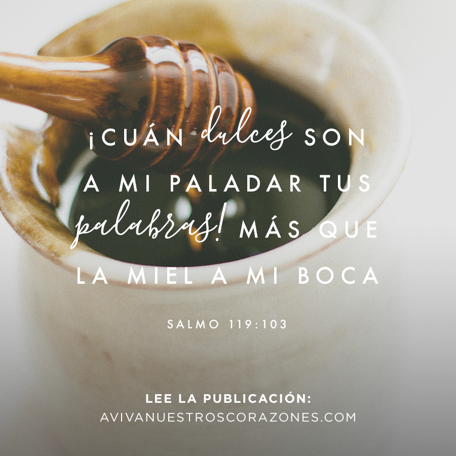 “¡Cuán dulces son a mi paladar tus palabras! ¡Son más dulces que la miel a mi boca!”, Salmo 119:103