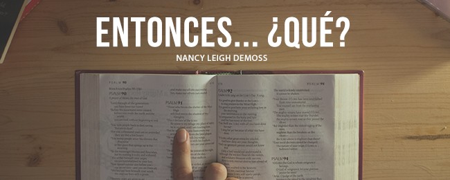 Nancy Leigh DeMoss: Conozco un pastor que comienza su mensaje leyendo un texto de la Palabra. Luego explica claramente lo que dice y significa ese texto. Y más adelante dice "Ese es el qué. Ahora la pregunta es entonces, ¿qué?" Este pastor no está satisfecho con que los miembros de su iglesia conozcan lo que dice el pasaje. Él quiere que lo apliquen a sus vidas.