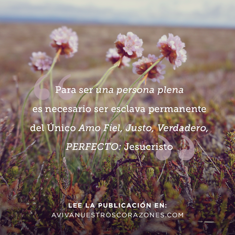 Para ser una persona plena, satisfecha, completa, gozosa, es necesario ser esclava permanente del Único Amo Fiel, Justo, Verdadero, PERFECTO: Jesucristo.