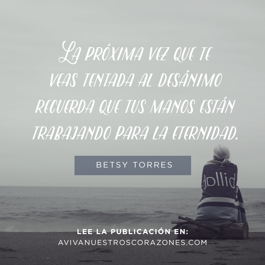 Así que la próxima vez que te veas tentada al desánimo recuerda que tus manos están trabajando para la eternidad, recuerda que toda tu esperanza está en la gloria venidera. Podemos servir confiadas en que nuestro trabajo, por mínimo que sea, traerá fruto porque Cristo es quien edifica su iglesia, es Su obra. ¡No temas! Sólo sé fiel poniendo el peldaño que te toca.