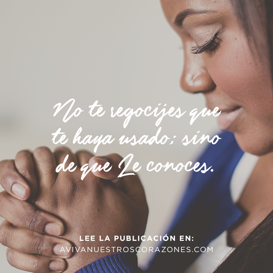 Usar tus dones para servir a Dios y otros es un honor tan grande. Es asombroso que Dios permita que gente pecadora sirva en Su obra. Se siente muy bien saber que alguien fue impactado por la lección que diste en la Escuela Dominical la semana pasada. Oír que una vida fue cambiada a través de una canción que escribiste. Ver que tus palabras impactan la decisión de una amiga para confiar en Jesús por primera vez. Pero tomemos en cuenta la advertencia de Jesús: esos momentos representan una amenaza para el gozo verdadero que se encuentra solamente en Dios mismo. No te regocijes que te haya usado; sino de que Le conoces.