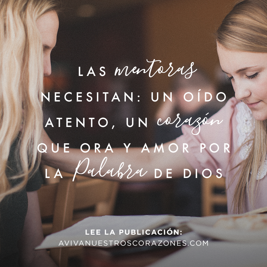 Como coordinadora del ministerio de mujeres en mi iglesia, una petición que escucho con frecuencia es el deseo de tener una mentora espiritual. Hay toda una variedad de expectativas detrás de cada mujer que lo externa. Algunas saben que necesitan crecer en su fe y desean una mujer mayor que provea consejo y sabiduría. Algunas anhelan una figura que las apoye y anime. A algunas les falta dirección y esperan que una mentora les pueda dar consejo. Algunas han sido heridas y esperan encontrar sanidad. Otras se sienten abrumadas y buscan alguien que les provea ayuda para aliviar las cargas de la vida.