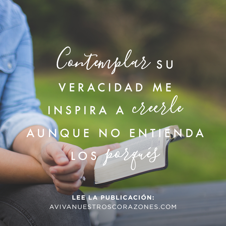 3) Me inspira a creerle de todo corazón aun en los momentos en que no entienda el porqué de muchas cosas…Ciertamente Él galardonará mi confianza en Su verdad y fidelidad.