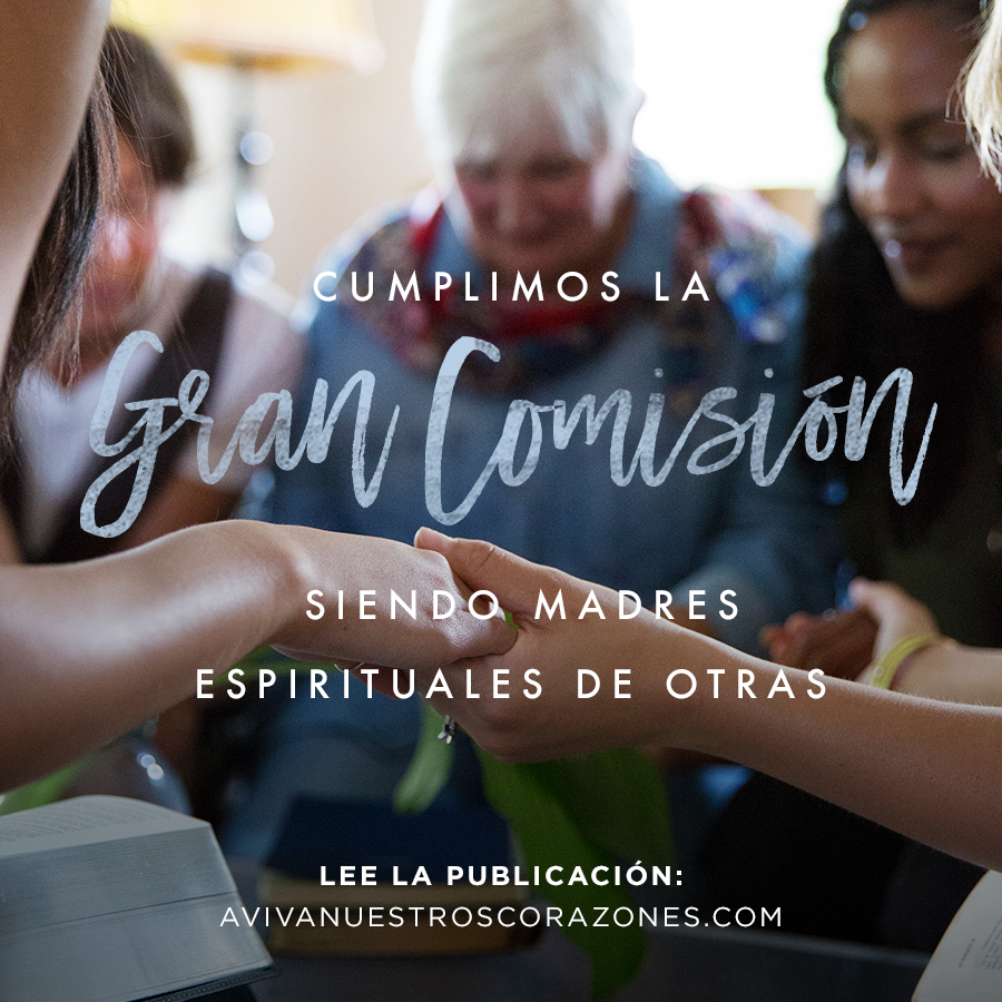 Una manera en que la iglesia cumple la gran comisión es equipando a mujeres maduras espiritualmente para nutrir o ser madres espirituales de otras mujeres. No es suficiente con simplemente decir a las mujeres que deben discipular a otras. Debe haber una capacitación, identificación intencional, agrupando a las mujeres en espacios para compartir su vida y el evangelio, unas con otras. Hay varias maneras en que esto puede hacerse: grupos pequeños, relaciones de uno a uno, como parte de estudios bíblicos; pero lo más importante es que debe hacerse de una manera en que la Palabra de Dios sea honrada.
