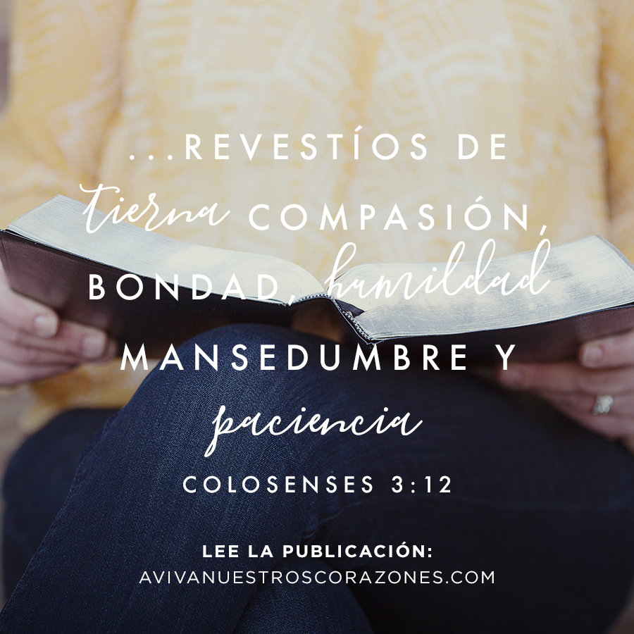 «Entonces, como escogidos de Dios, santos y amados, revestíos de tierna compasión, bondad, humildad, mansedumbre y paciencia soportándoos unos a otros y perdonándoos unos a otros, si alguno tiene queja contra otro; como Cristo os perdonó, así también hacedlo vosotros. Y sobre todas estas cosas, vestíos de amor, que es el vínculo de la unidad. Y que la paz de Cristo reine en vuestros corazones, a la cual en verdad fuisteis llamados en un solo cuerpo; y sed agradecidos.