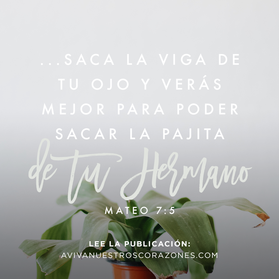 Al juzgar a otros, dejo de juzgarme a mí misma. El ejemplo parece ridículo, pero trata de imaginar por un momento a tu amiga frente al espejo intentando sacar un pedacito de paja que se le metió ahí, y tú queriendo ayudarle con una viga, tipo poste de teléfono, saliendo de tu ojo. Es una imagen absurda. Y así debe ser. Se me debe hacer absurdo pensar que yo puedo criticar o juzgar; determinar si alguien ha hecho algo contrario a la ley, cuando yo cargo con problemas tan grandes y graves que no puedo ni ver. El orgullo de mi corazón, que me hace enfocarme en los errores de otros, produce ceguera espiritual en mí.