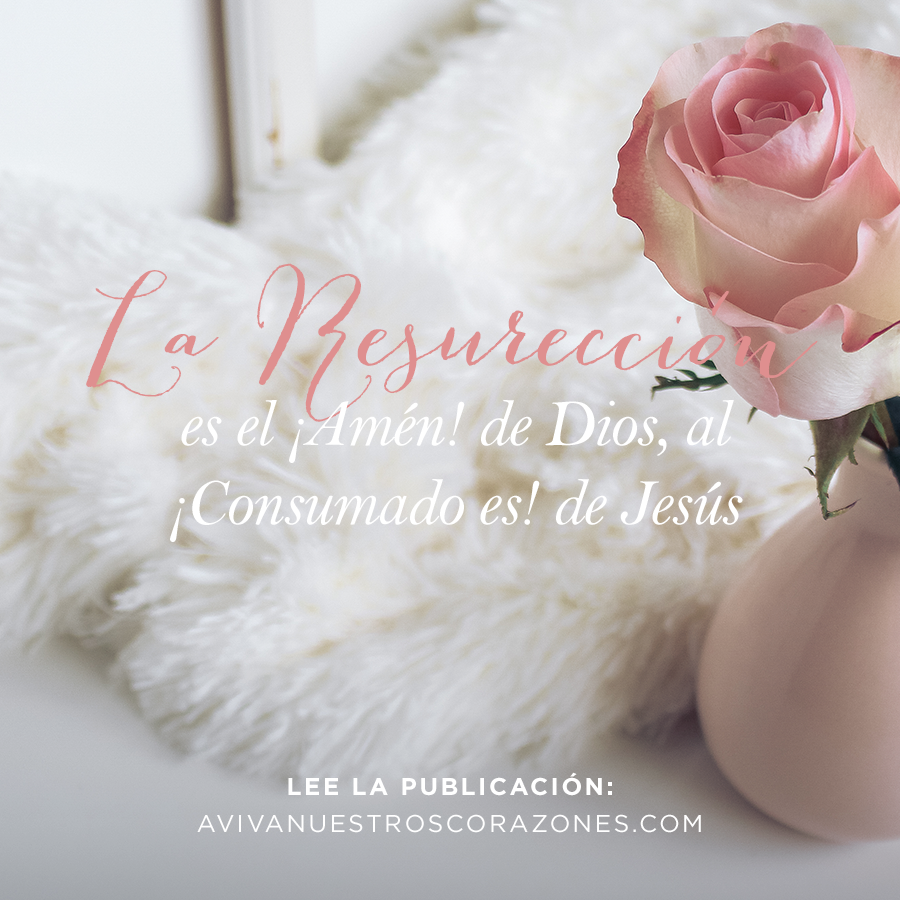 Esto significa que cuando Dios levantó a Jesús de entre los muertos, Lo estaba reivindicando. Como lo explica Alex Motyer “La resurrección es el ¡Amén! De Dios en respuesta al ¡Consumado es! de Cristo”. ¡La resurrección significa que ya tenemos todas las bendiciones! Somos perdonadas; justificadas y solo por fe. ¿Cómo lo sabemos? Lo sabemos porque Jesús está vivo. Simplemente no existen mejores noticias que éstas en el mundo.