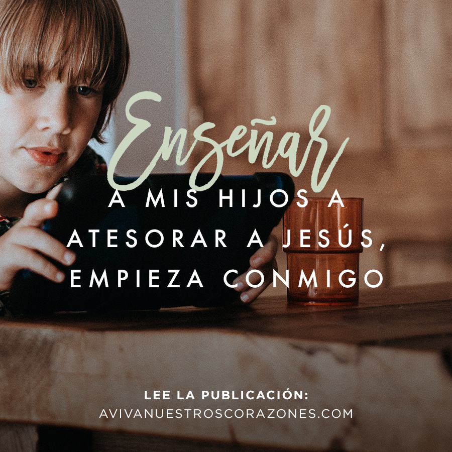 Enseñar a mis hijos a atesorar a Jesús comienza con la mujer en el espejo. Hablaré de mis tesoros. Y eso es lo que quiero que mis hijos vean y escuchen en mí, una mujer que atesora a Jesús sobre todas las cosas. Que ésta sea la realidad en nuestras vidas.