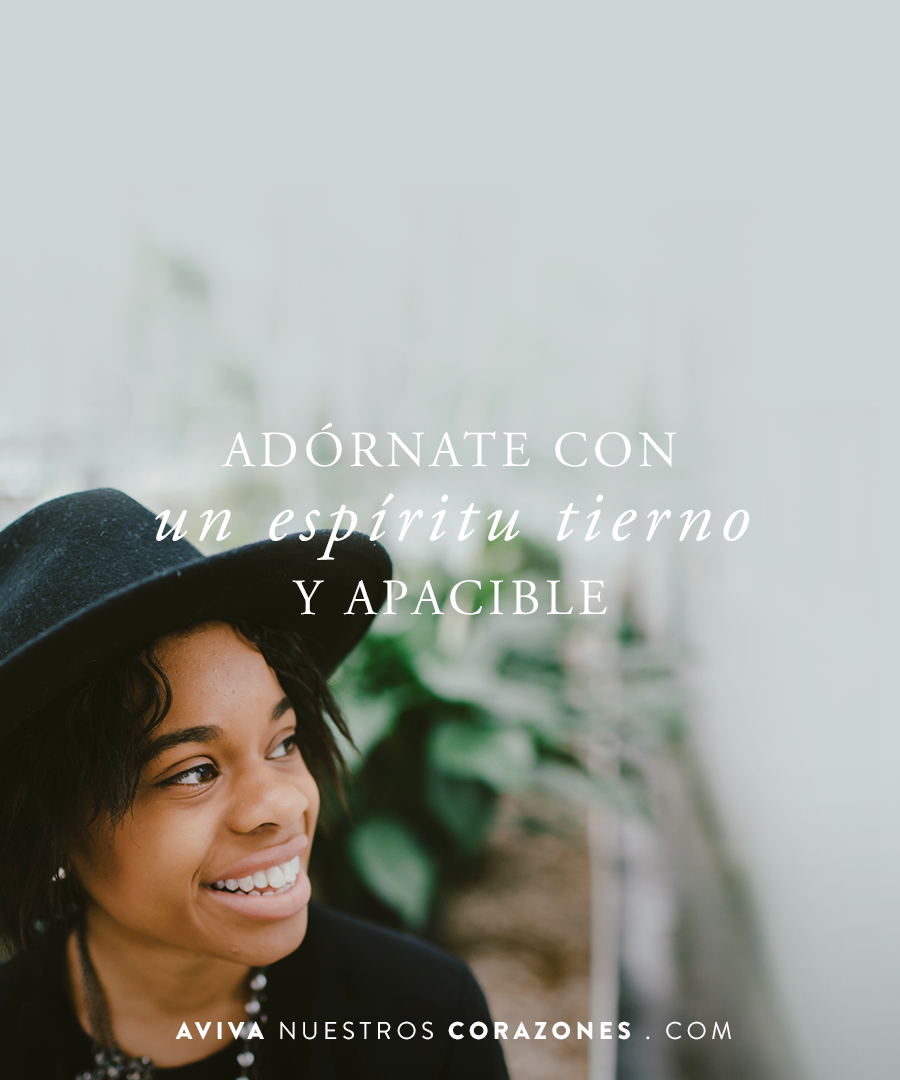 Un corazón tierno y apacible no es algo natural para ninguna de nosotras, pero Pedro urge a las esposas en particular que se adornen con el en 1 Pedro 3:4: «sino que sea el yo interno, con el adorno incorruptible de un espíritu tierno y apacible, lo cual es precioso delante de Dios».