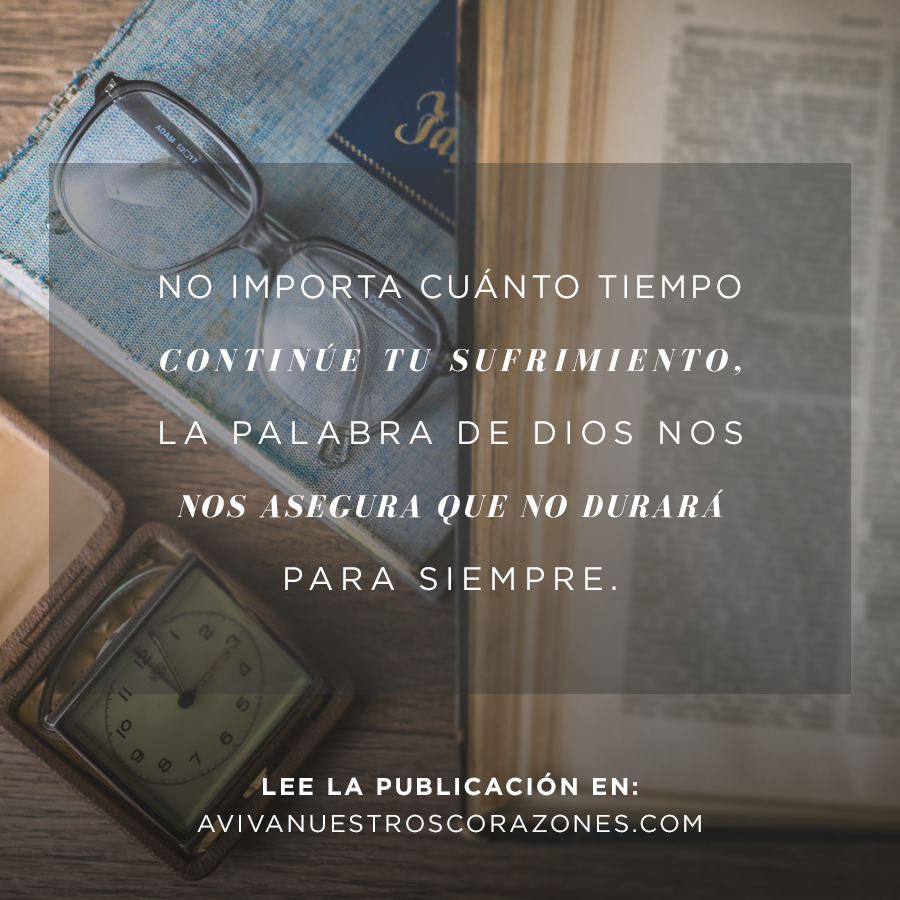 No importa cuánto tiempo continúe tu sufrimiento, la Palabra de Dios nos asegura que no durará para siempre. Recuerda las palabras de Romanos 8:18: