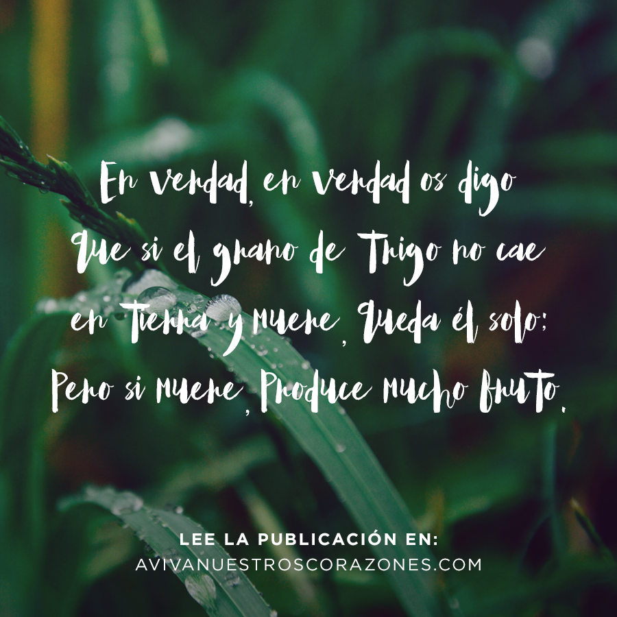 De cierto, de cierto os digo, que si el grano de trigo no cae en la tierra y muere, queda solo; pero si muere, lleva mucho fruto. El que ama su vida, la perderá; y el que aborrece su vida en este mundo, para vida eterna la guardará. Juan 12:24-25