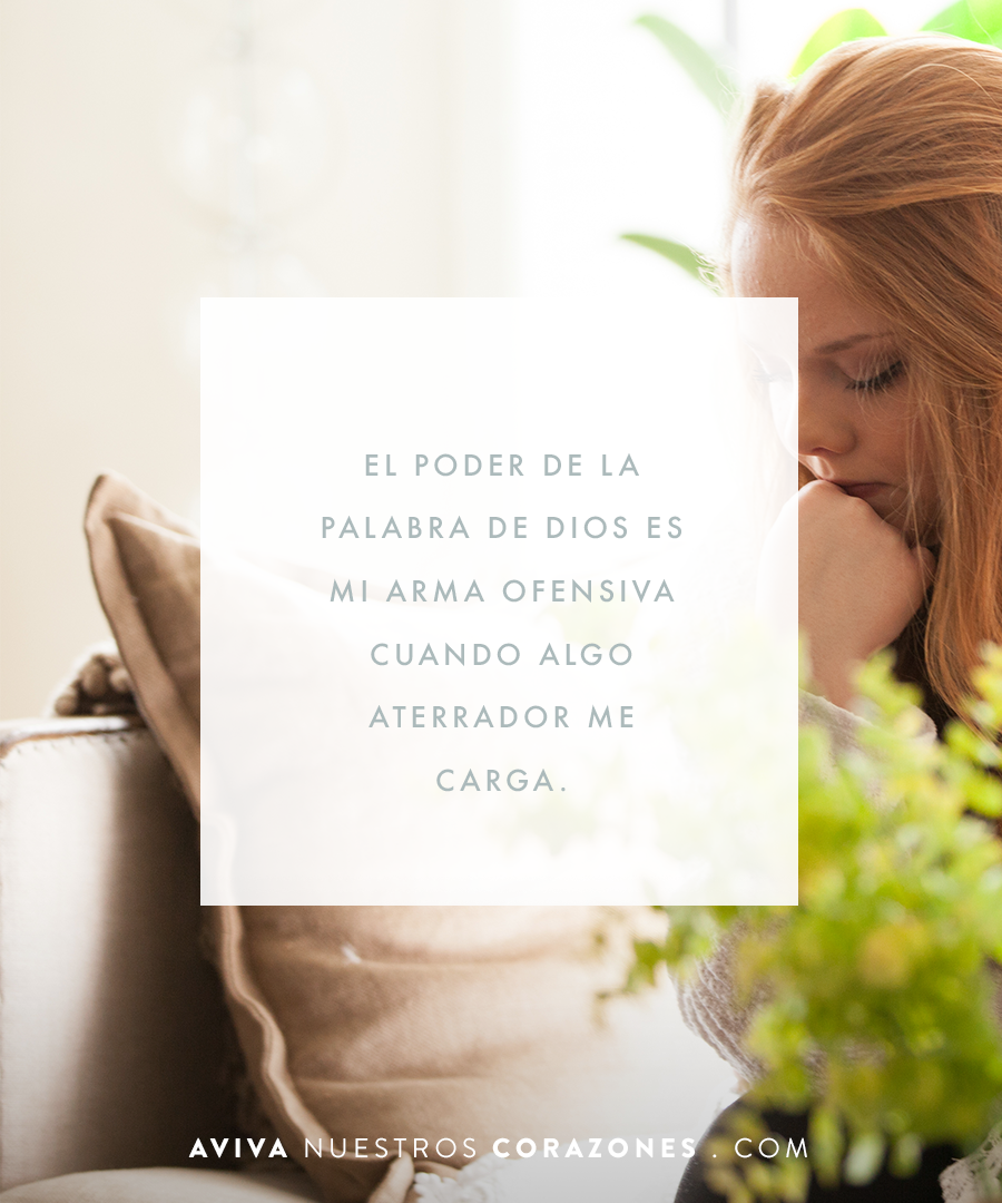 Cuando comencé a usar la Palabra como un arma, los ataques de pánico terminaron. Ahora, cuando me despierto con miedo, digo versículos como estos en voz alta: