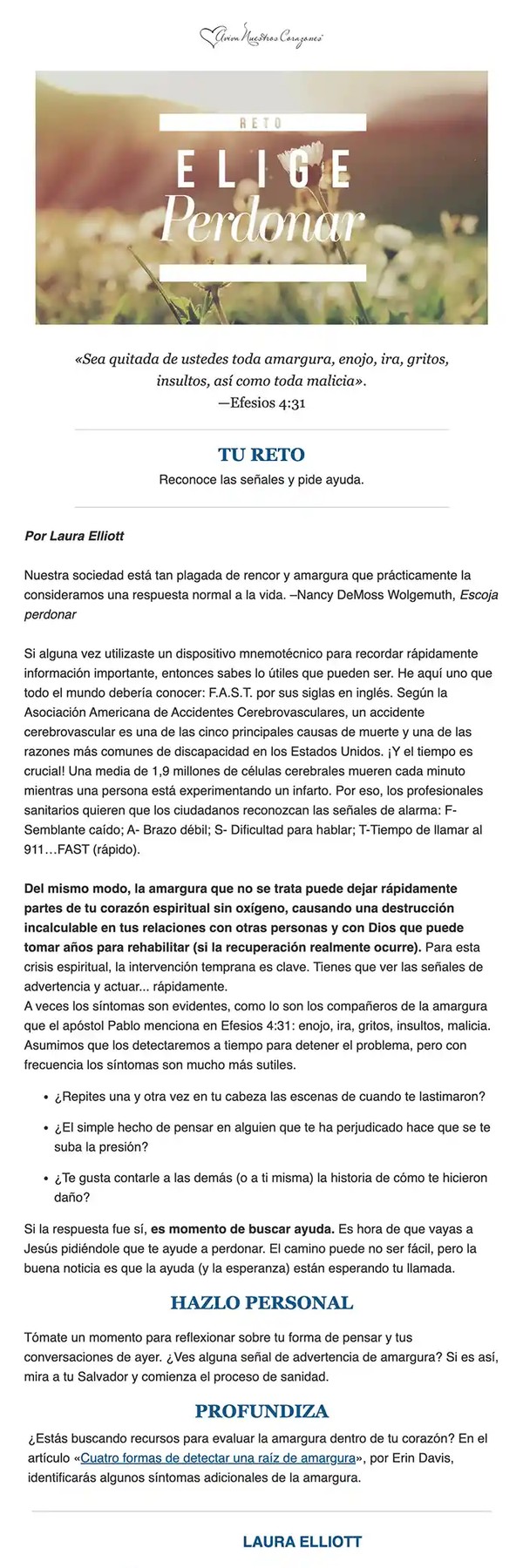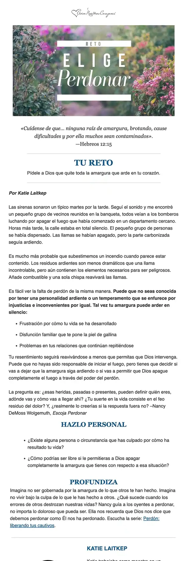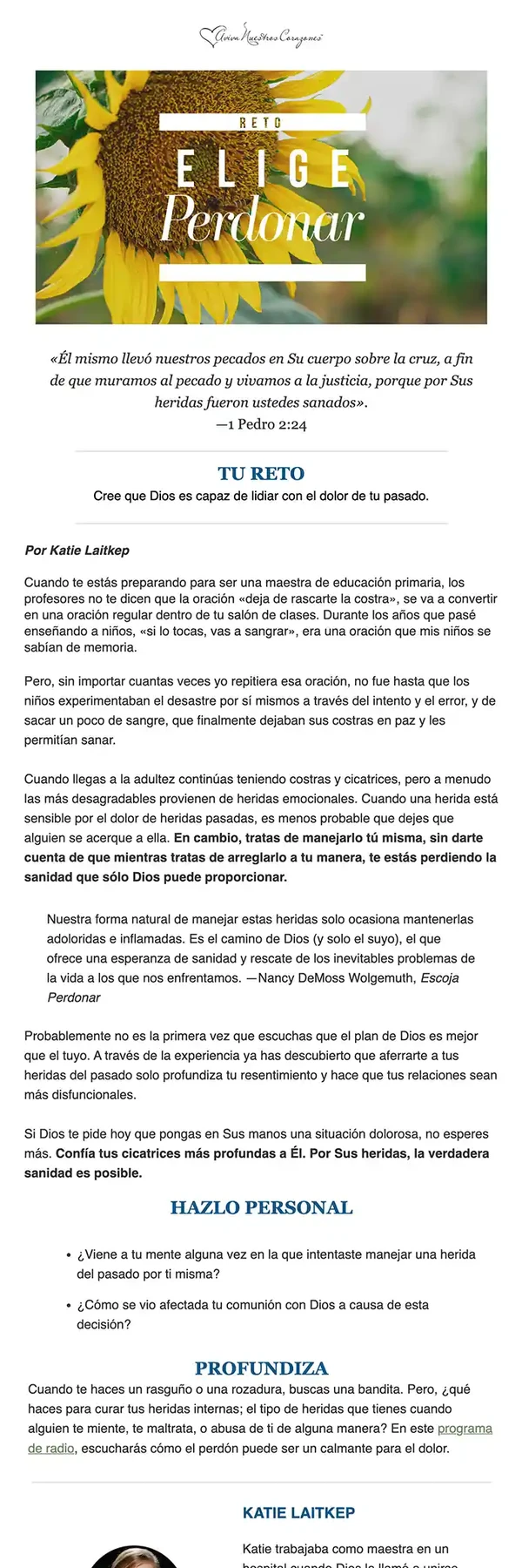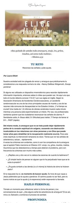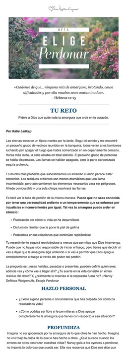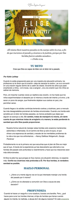 Al inscribirte en uno de nuestros retos recibirás un correo electrónico donde estaremos caminando a tu lado con palabras de ánimo y aliento para motivarte a lograr tus metas de cada día. Estamos seguros de que será de mucha bendición para ti. Cada lectura del reto generalmente incluye: