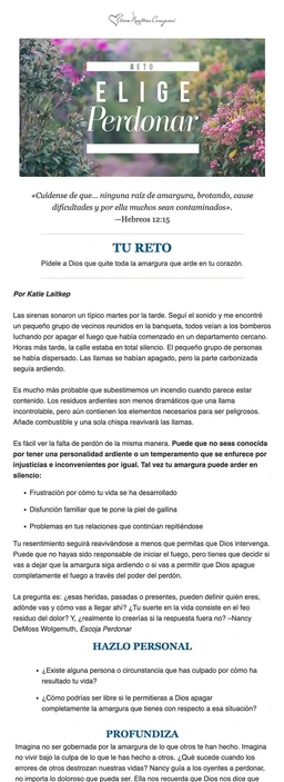 - Un devocional relacionado con el reto elegido.