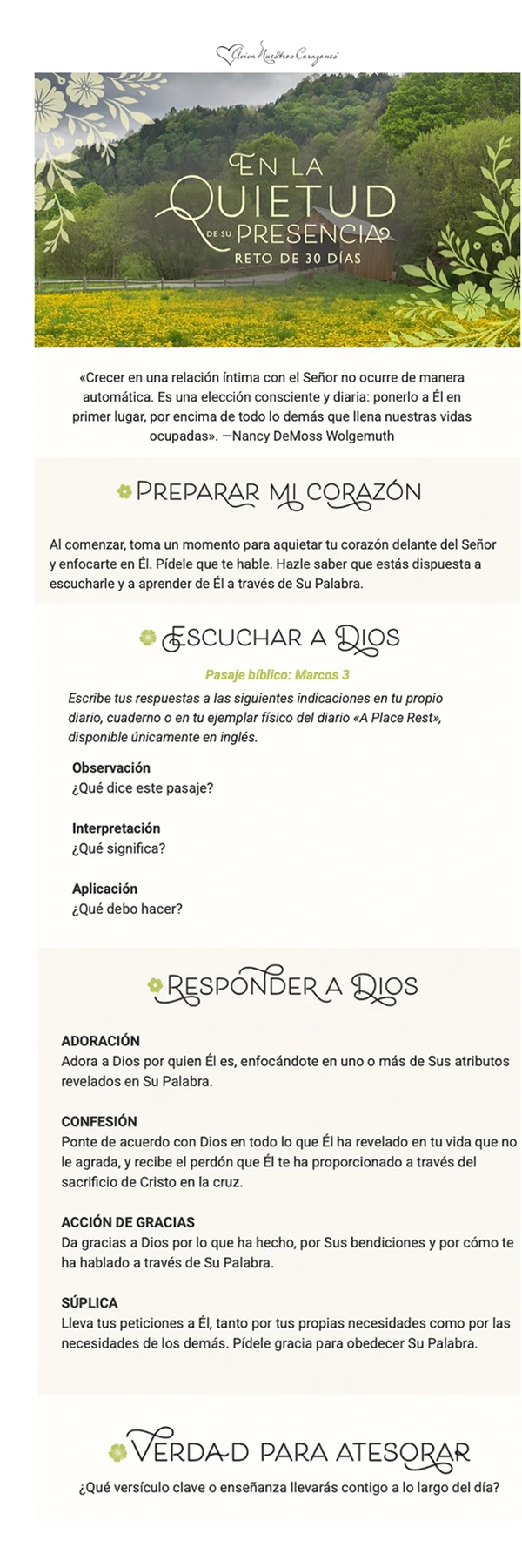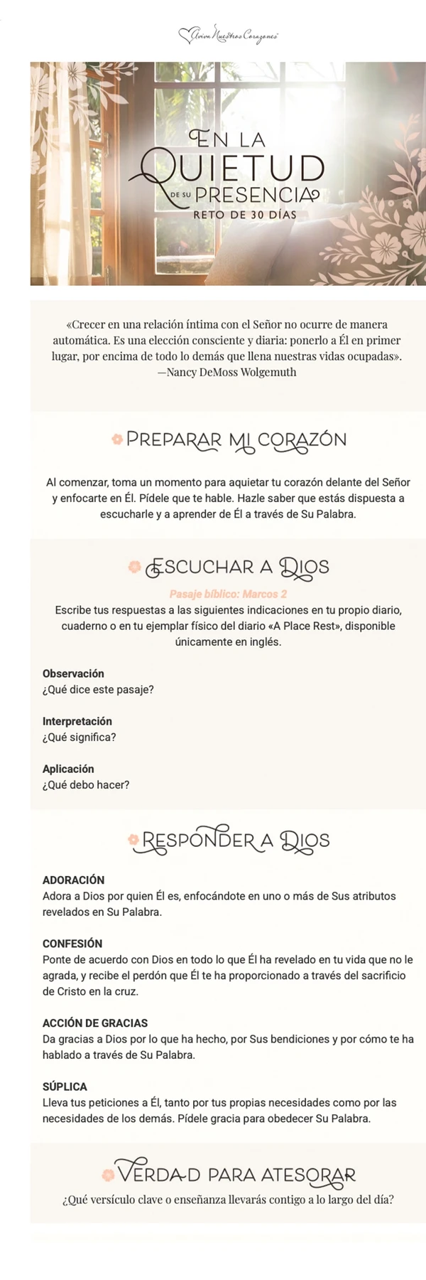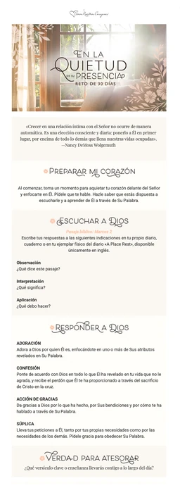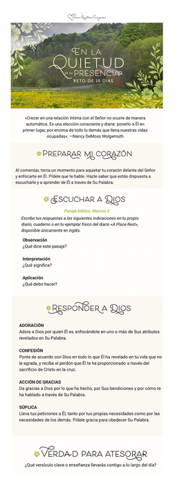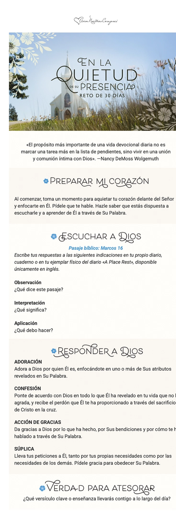 Gracias por unirte a «En la quietud de Su presencia», un reto de Aviva Nuestros Corazones.