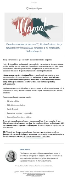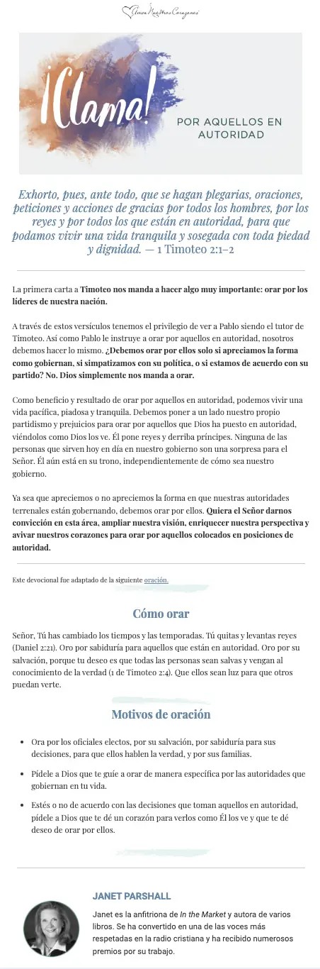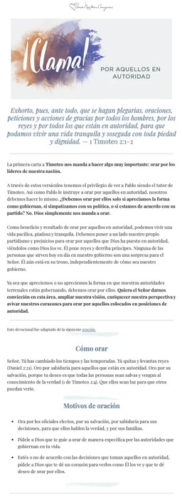 Al inscribirte en uno de nuestros retos recibirás un correo electrónico donde estaremos caminando a tu lado con palabras de ánimo y aliento para motivarte a lograr tus metas de cada día. Estamos seguros de que será de mucha bendición para ti. Cada lectura del reto generalmente incluye: